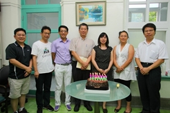 本校圖文傳播學系、科學教育中心及通識教育中心教師所組成之跨領域團隊,於五年前執行國科會計畫產出成果「科學成就之旅」影片, 由於內容有獨特價值,臺師大至今已完成十三件授權案之簽署,累計權利金收入達一百萬元。七月九日於研發處產學合作組舉辦下午茶聚會,在陳順同副研發長、產學合作組郭建宏組長、黃貞琇經理及同仁共同參與下,與四位老師一同切下蛋糕,以慶祝達到此里程碑及分享喜悅。