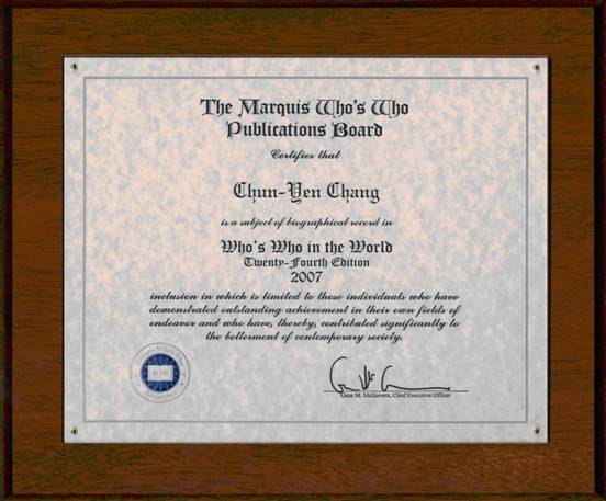 | Who's Who in the World 2007 (24th) – 2010 (27th) Editions | Marquis Who's Who | 2007-2010 |