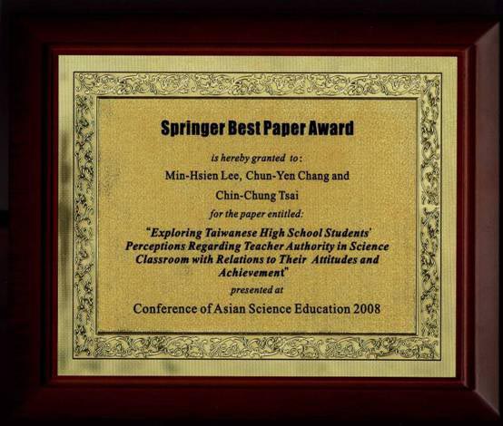 | Springer Best Paper Award at the CASE 2008 (Conference of Asian Science Education) | CASE 2008 | 2008 |