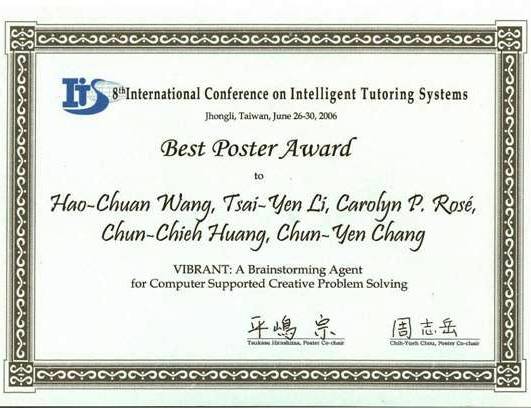 | 2006 ITS (Intelligent Tutoring Systems) Best Poster Award |