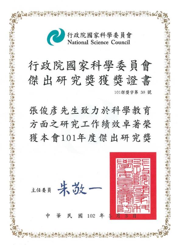 | 101年度研究績優獎 | 國立臺灣師範大學 | 2013 |